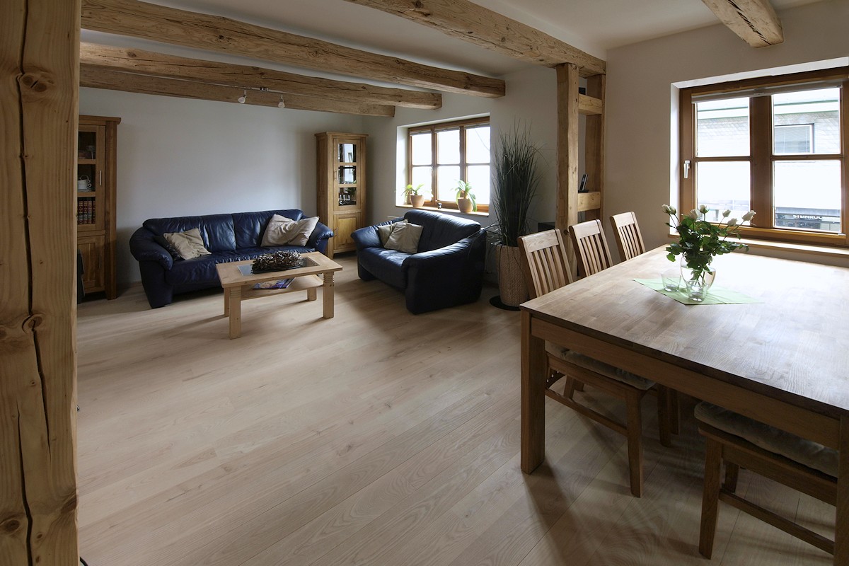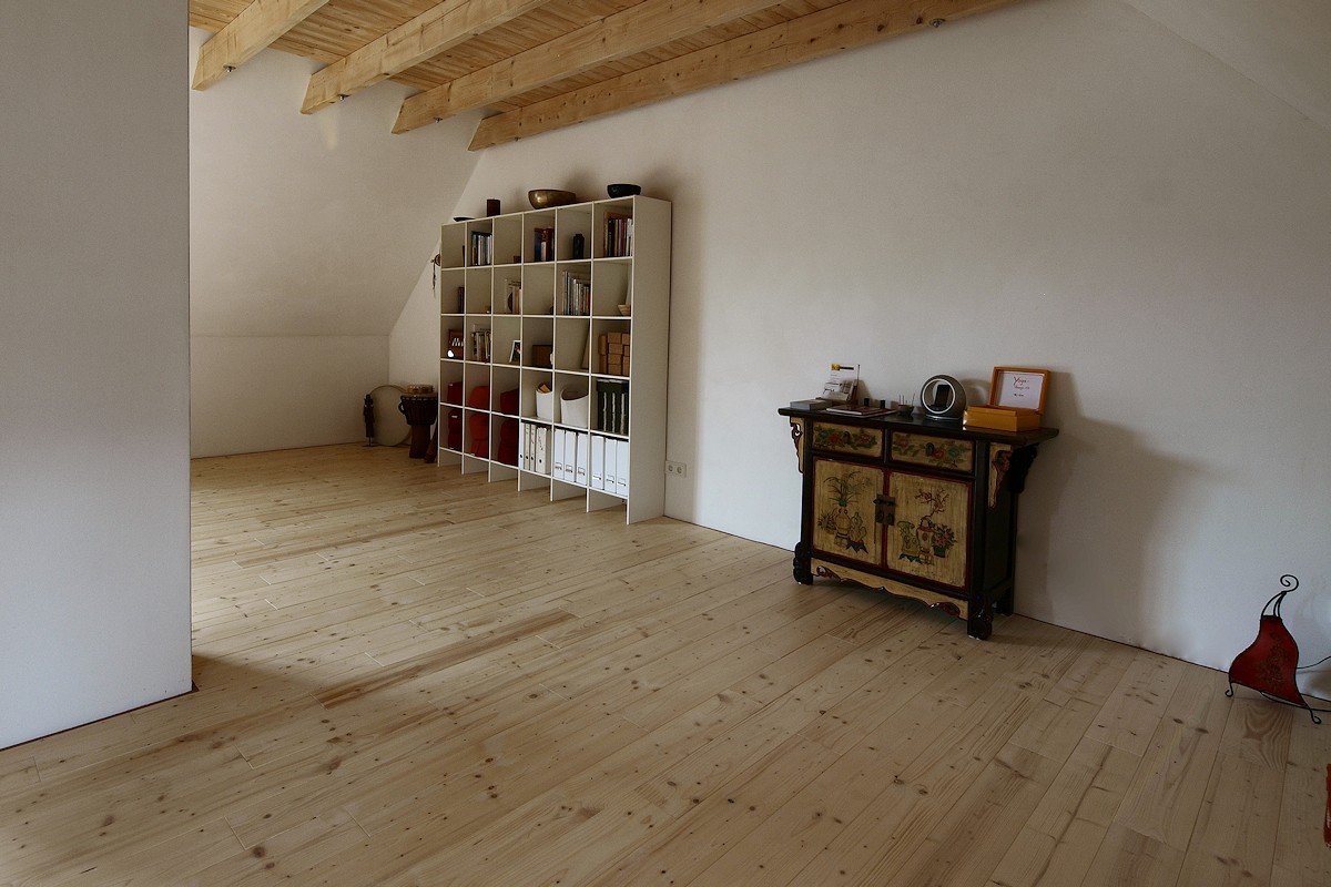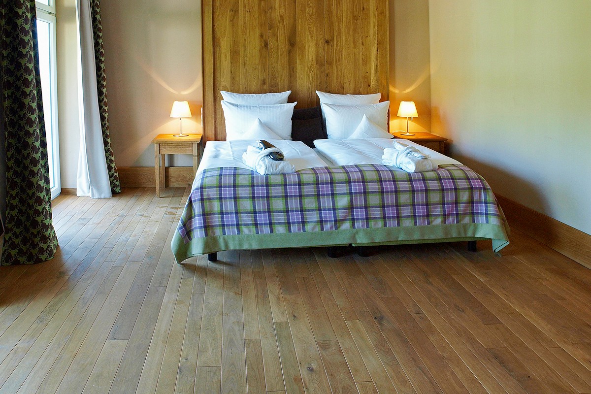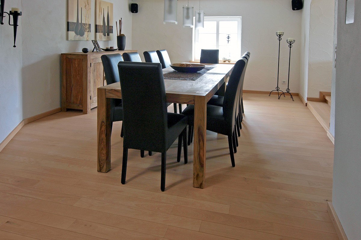 Wichtig: Eine Massivholzdiele sollte stets eine offenporige Oberfläche haben. Dadurch bleibt der Boden atmungsaktiv, fußwarm und erhält seine natürlichen Eigenschaften.