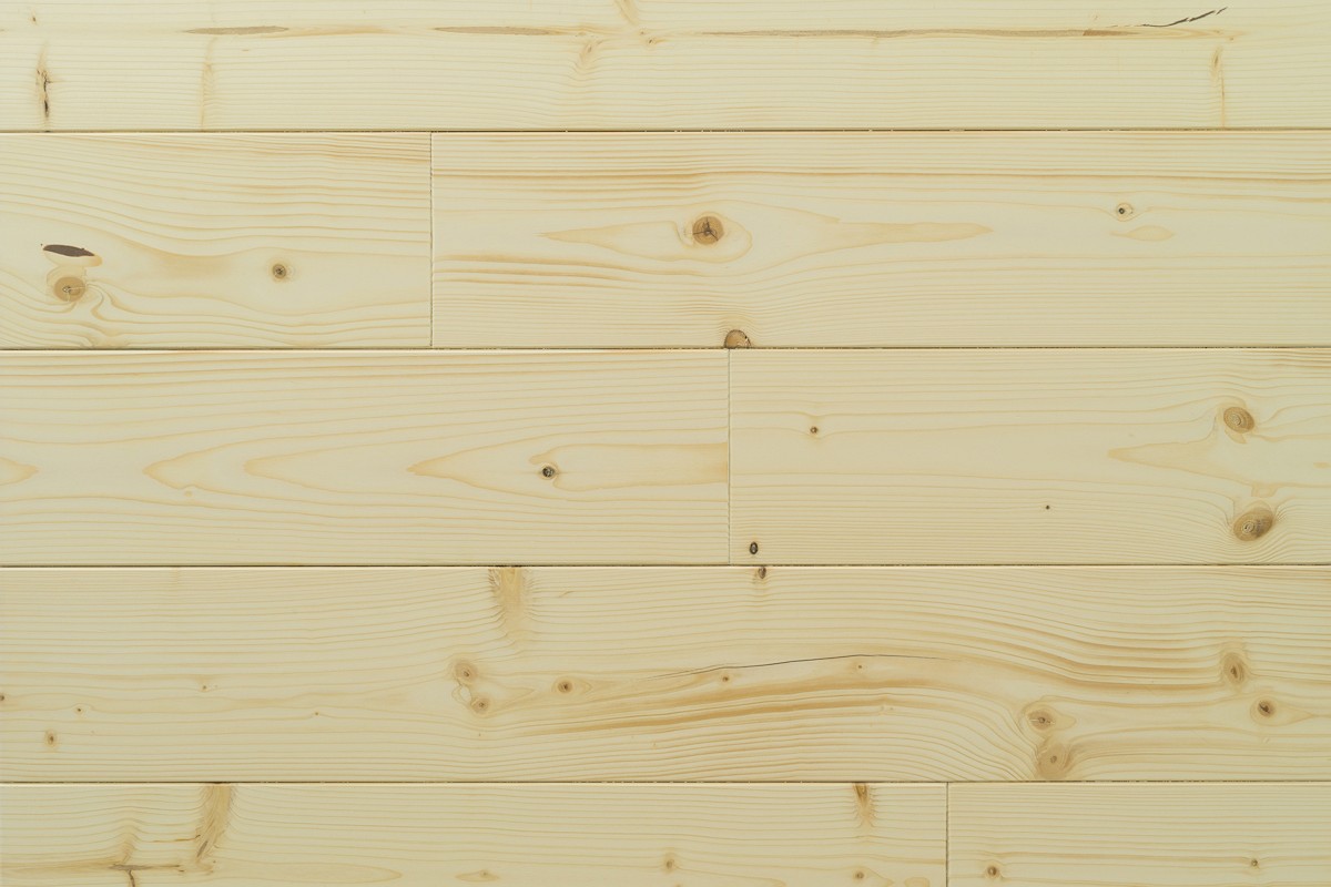 | Beschaffenheit | langfaserig, hoher Harzgehalt, umlaufend leicht gefast, kleine Schwarzäste, sowie Trockenrisse bis 2,5 mm Breite sind zulässig, Astdurchmesser bei festverwachsenen Ästen bis 1/5 der Dielenbreite schmalseitig gemessen erlaubt. Offene Harzgallen, Astausbrüche oder Durchfalläste werden ausgekittet oder durch einen Aststopfen ersetzt |