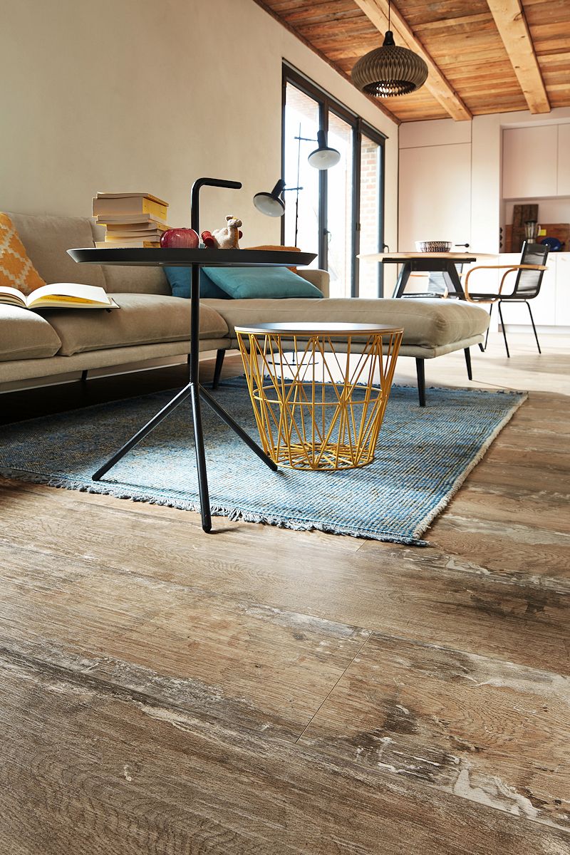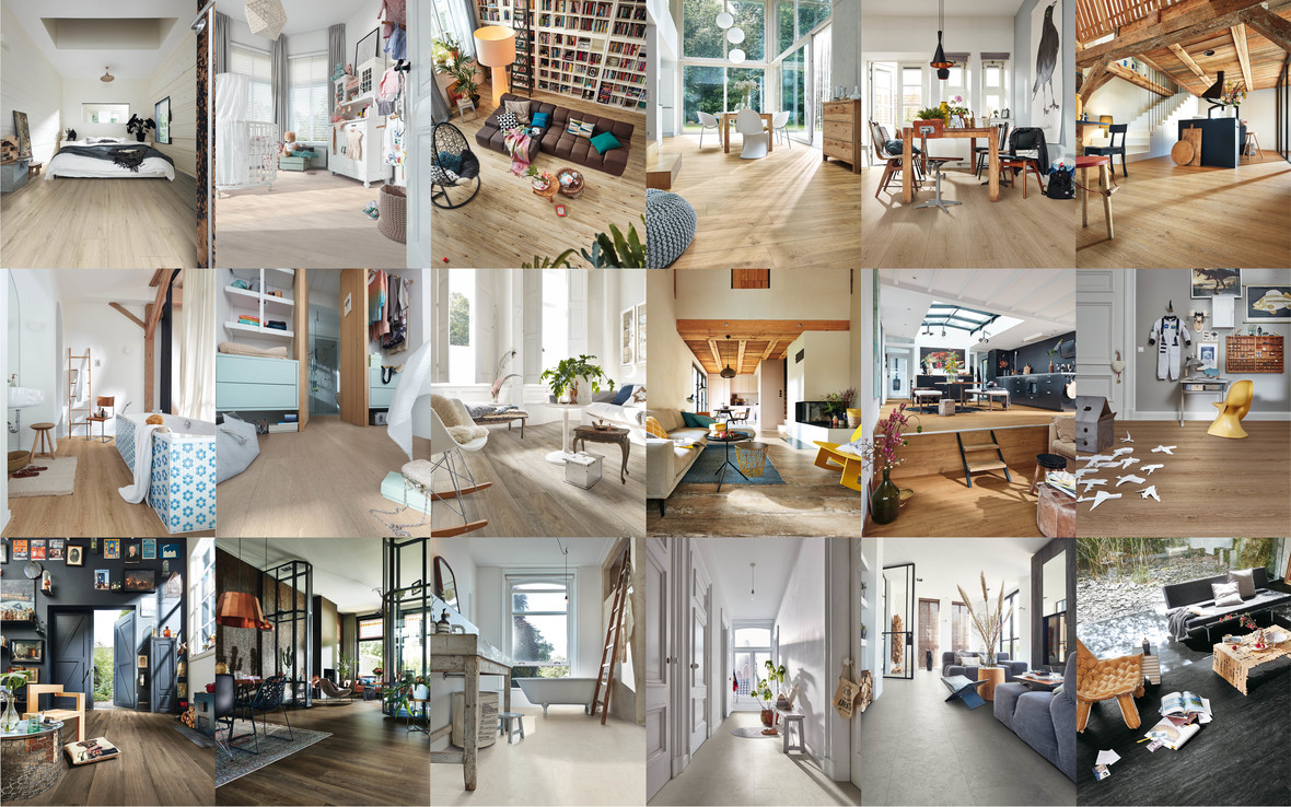 Die MeisterDesign-Dekore decken die ganze Bandbreite moderner Bodengestaltung ab: von zeitlosen Eichenoberflächen in unterschiedlichen Farbstellungen über authentische Schiefernachbildungen bis hin zu außergewöhnlichen und trendigen Vintage-Dekoren. Jedes der 18 Dekore steht in vier unterschiedlichen Aufbauvarianten zur Verfügung, und zwar jeweils als Kurzdiele und als modernes Großfliesenformat (MeisterDesign. pro ausschließlich als Kurzdiele).