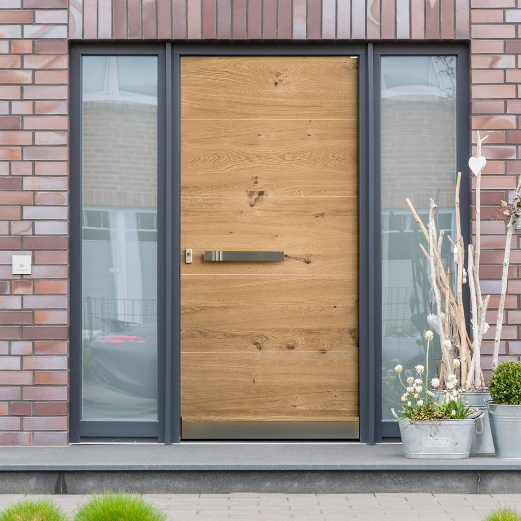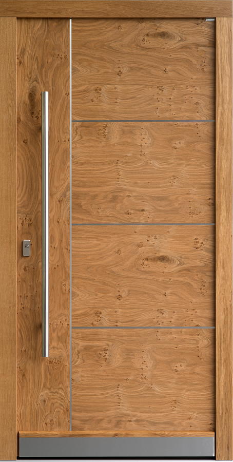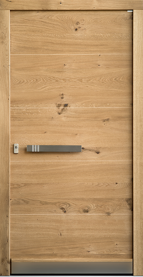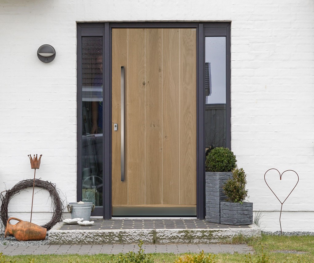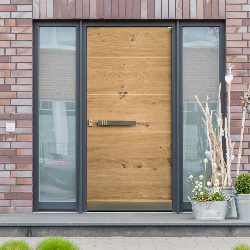 Farben, Maserungen und Strukturen verschiedener Holzoberflächen können auf beiden Seiten Ihrer Haustür unterschiedlich sein. So wird die Raumseite zum unverzichtbaren Gestaltungselement im Haus. Passend zu Boden, Möbeln und Innentüren. Einfach perfekt.