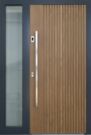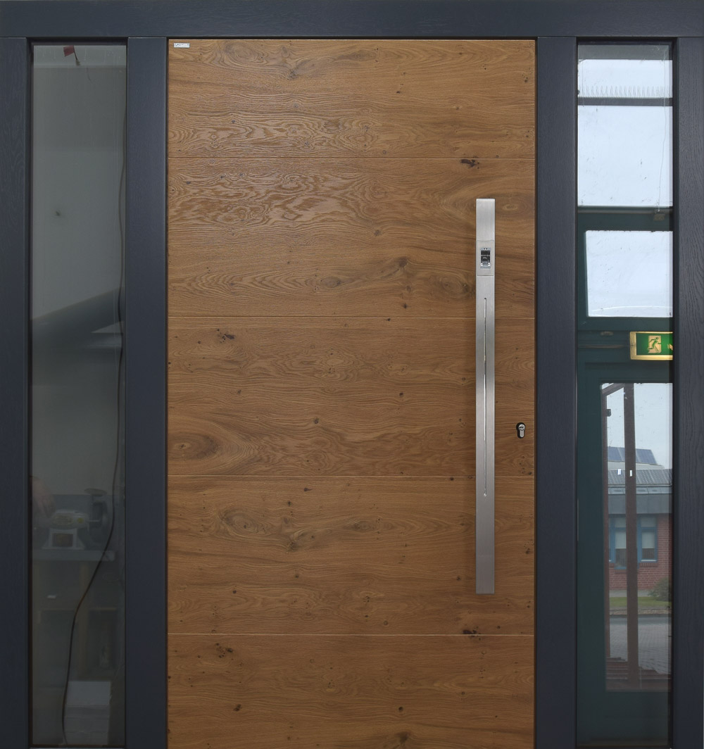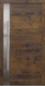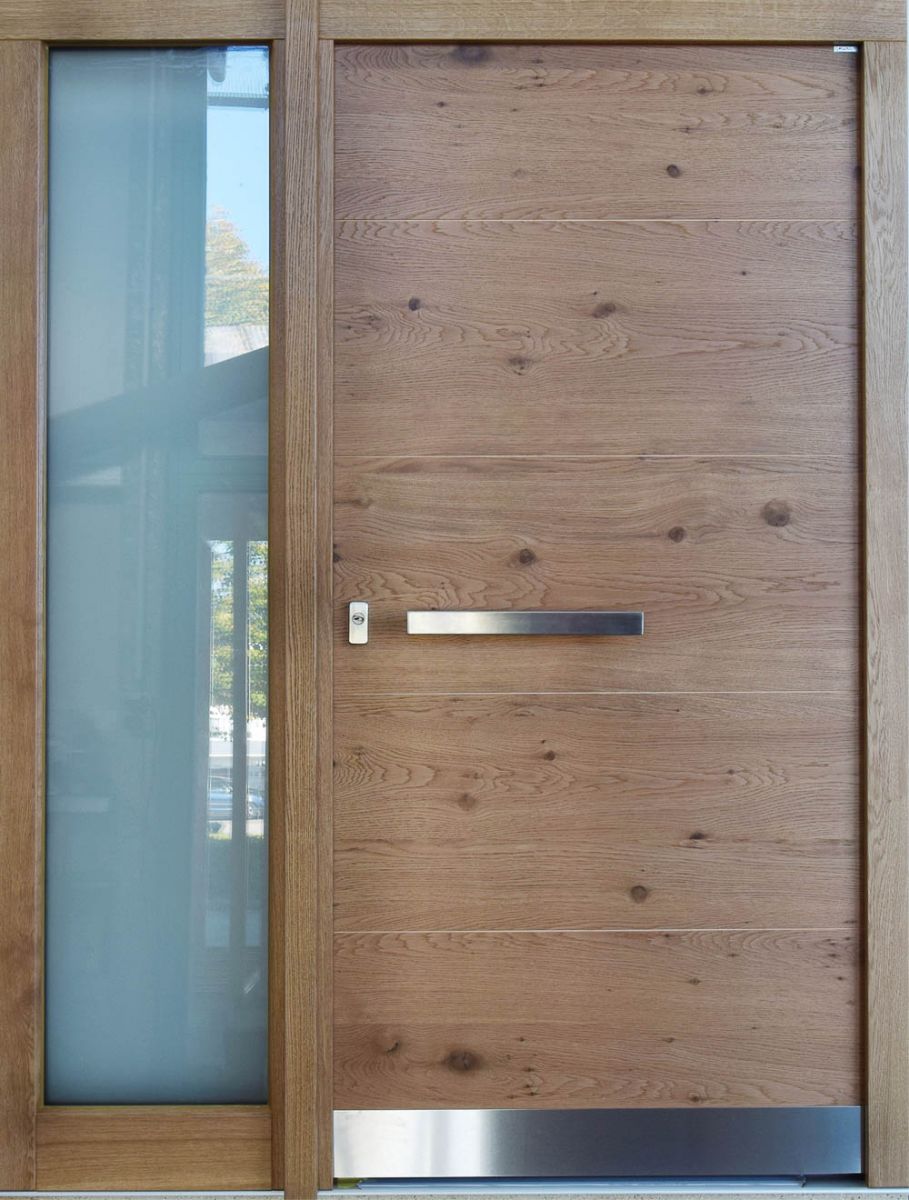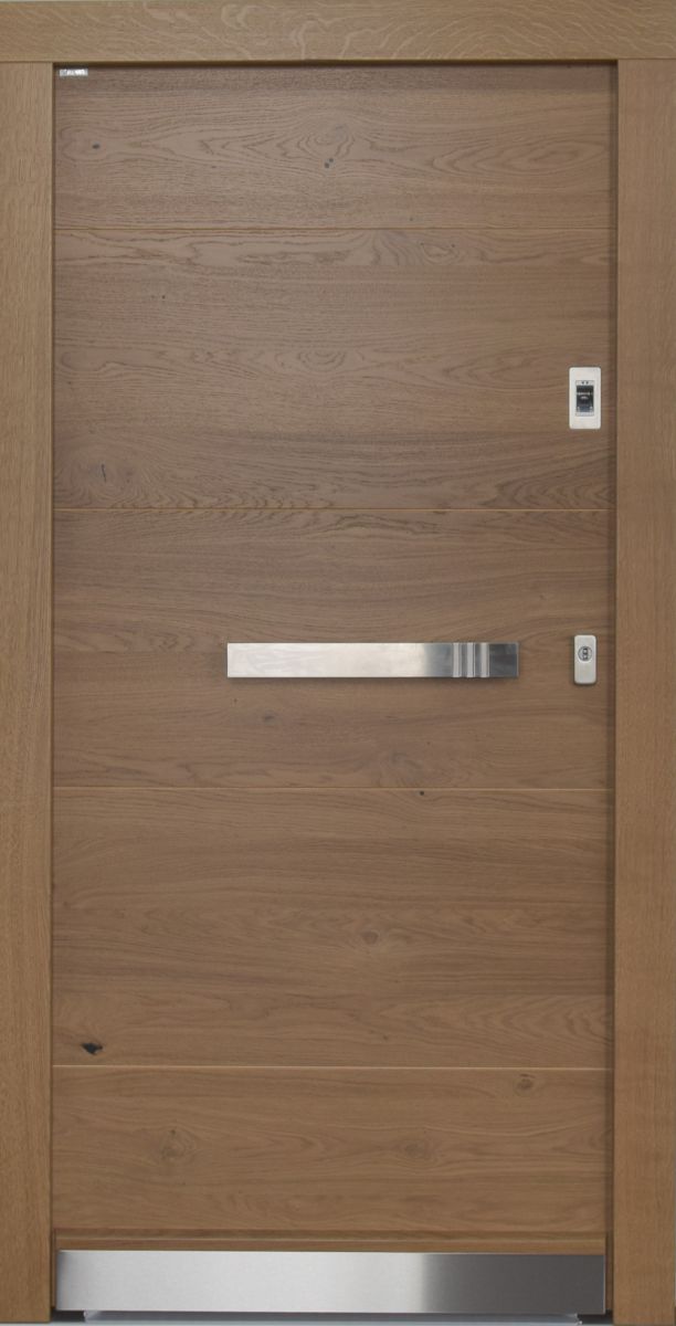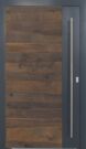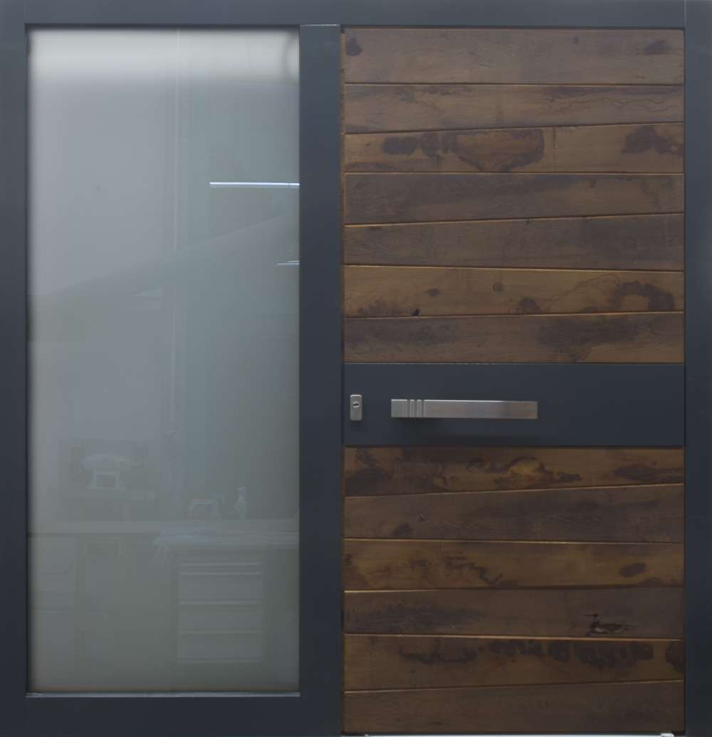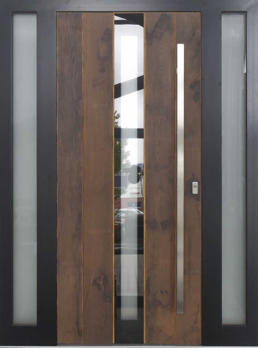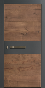 Besonderes Merkmal ist der rustikale, authentische Charakter dieser Modelle. Das Türblatt ist außen mit massiven handbearbeiteten Eichenbohlen bestückt. Die Bohlen sind handverlesen und werden auf Eignung geprüft und getrimmt. Gebrauchsspuren, Auskerbungen, Abrieb, Astlöcher sind ausdrücklich erwünscht. Die Oberfläche der Eichenbohlen ist ausschließlich in dem speziell für diese Modelle abgemischten Farbton ‚Altholz‘ erhältlich. Die Grundierung bereitet diese extrem profilreichen Holzoberflächen auf die Endbehandlung mit hochwertigem wasserbasiertem Holzöl vor. Das Ergebnis ist wunderbar matt und natürlich anmutig. Diese Oberfläche kann ganz einfach gepflegt bzw. nachbehandelt werden. Wir empfehlen das Pullex Holzöl von ADLER. Je nach Intensität der Bewitterung empfiehlt sich die Behandlung 1 - 2 mal jährlich. So kann einer Vergrauung des Holzes entgegen gewirkt werden. Pflegehinweise zur Werterhaltung begleiten die Tür bei Auslieferung. Dennoch wird sich die Oberfläche der Eichenbohlen, je nach Einbaulage, im Laufe der Zeit verändern, das ist ein natürlicher Prozess und ausdrücklich so gewollt. Aus diesem Grund ist die Oberfläche von der Gewährleistung ausgeschlossen. Die Einbausituation erfordert bauseits einen konstruktiven Schutz, der eine direkte Sonneneinstrahlung und Bewitterung durch Niederschläge verhindert. Die sehr spezielle Konstruktion dieser Tür ermöglicht es, die komplette Vorhangschale mit wenigen Handgriffen auszuwechseln. Das trifft auf alle Modelle der gesamten Edition FENNEN ohne Glasausschnitt zu. Darüber hinaus ist es sogar möglich, einzelne Bohlen auszutauschen, sollten diese beispielsweise mechanisch beschädigt werden. Dieses hohe Maß an Flexibilität ist ein besonderer Vorzug, den Sie nicht außer Acht lassen sollten.