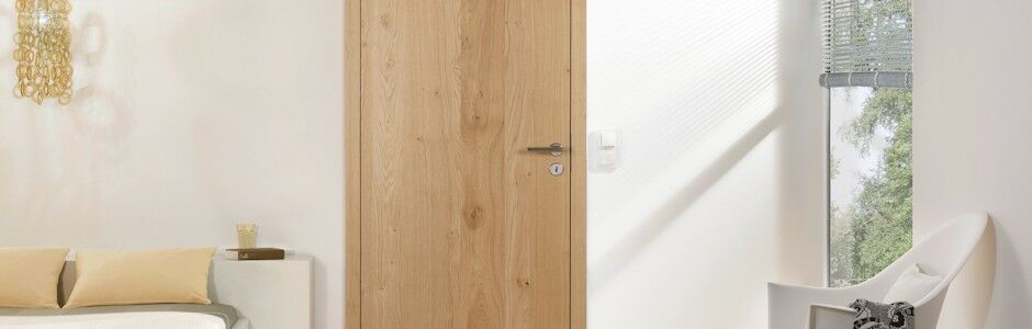 Die Kombination einer furnierten Tür mit einer in weiß lackierten Zarge ist eine mögliche Variante und setzt die Tür wunderbar in Szene.