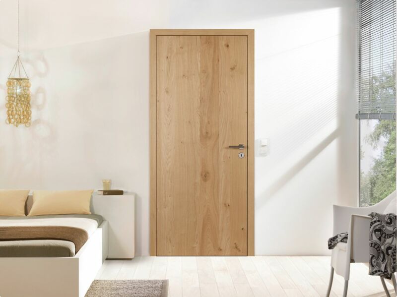 Modell Glatt | stumpf | Türblatt Eiche astig naturmatt, Zarge eckig, 70 mm, Eiche naturmatt