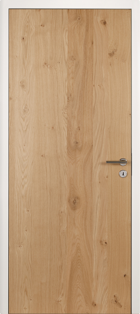 Modell Glatt | stumpf | Türblatt Eiche astig naturmatt, Zarge eckig, 70 mm, Lack ähnl. RAL 9010