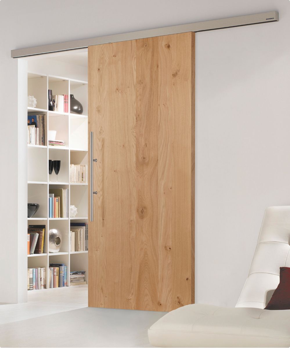 Modell Glatt | Eiche astig Naturmatt | Schiebesystem TVIN 2.0, Griffstange G720, Edelstahl matt