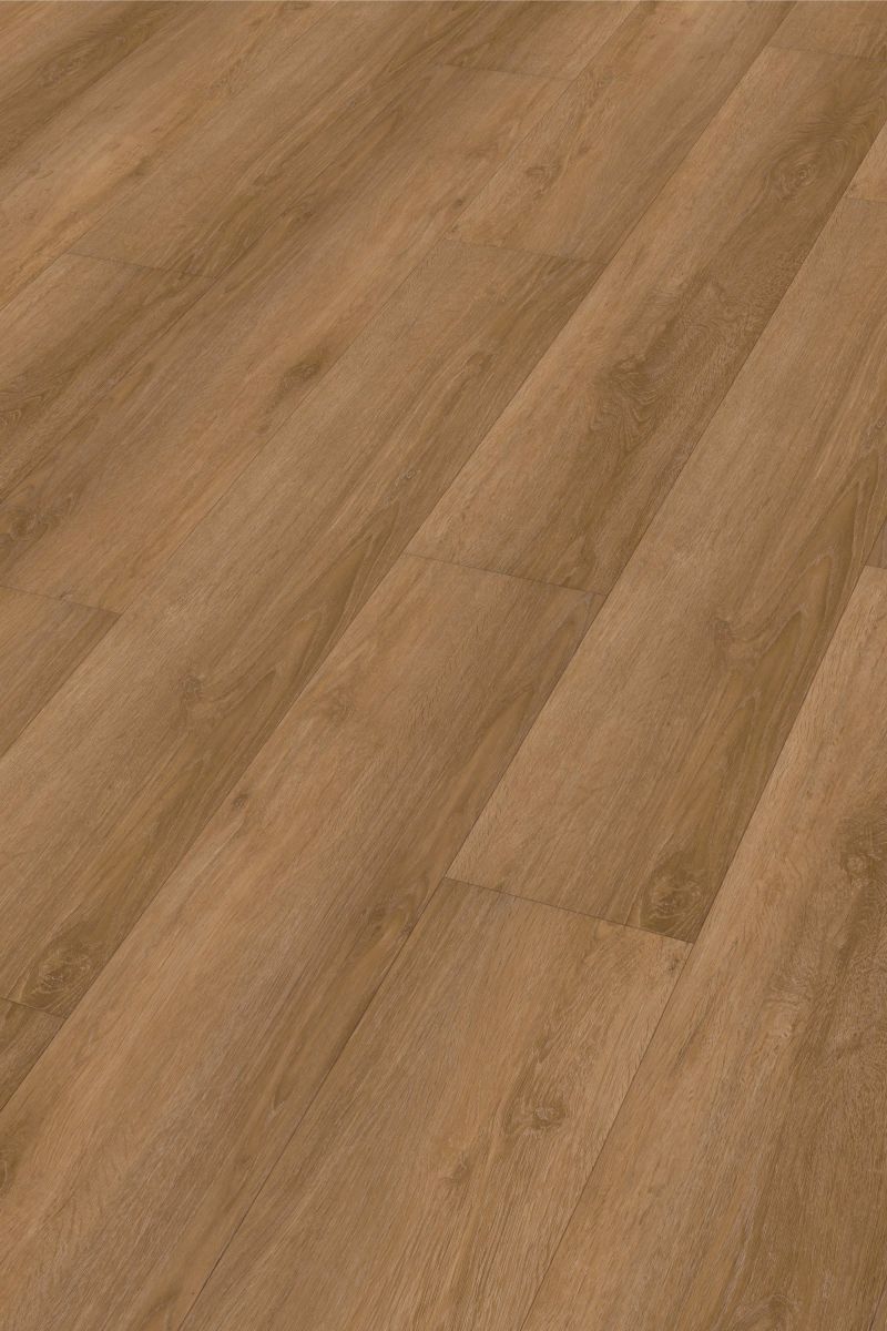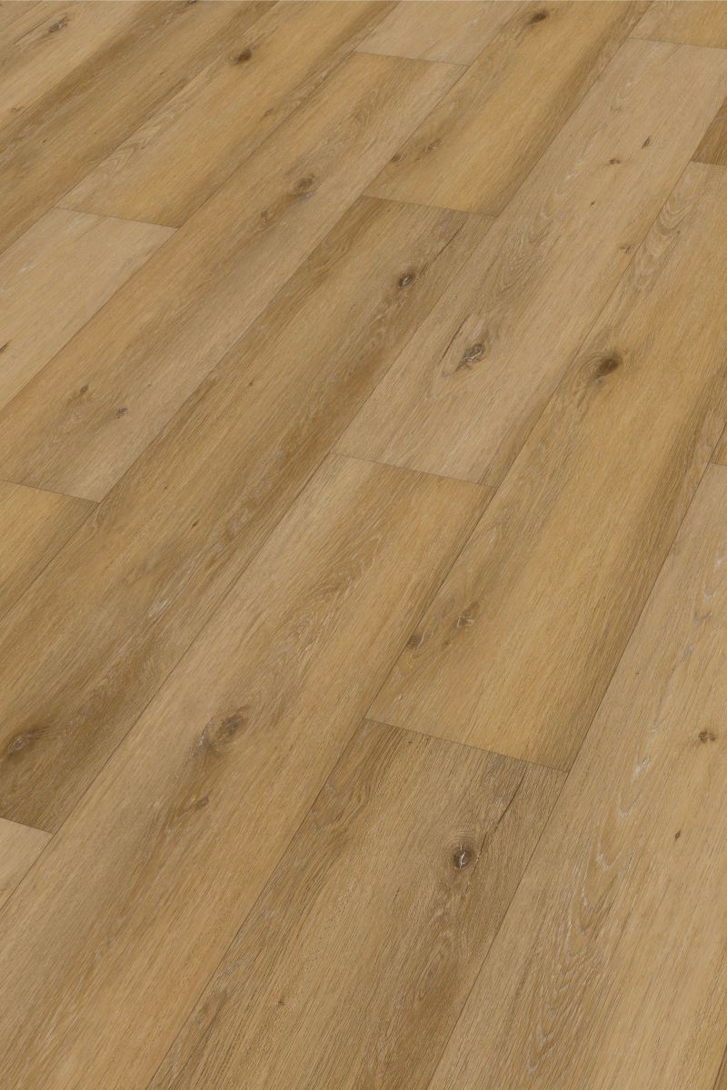 Der wasserfeste Boden ist durch seine spezielle Rigid-Polymer-Trägerplatte besonders formstabil, eine zusätzliche elastische Zwischenschicht dämpft den Gehschall im Raum. Die mehrlagige Vinyloberfläche mit PUR-Beschichtung macht den Boden äußerst pflegeleicht. Eine integrierte Trittschallkaschierung auf der Rückseite sorgt für mehr Ruhe in den darunter liegenden Räumen. Die Dielen verfügen bei hoher Stabilität trotzdem über ein vergleichsweise nur geringes Flächengewicht – dadurch lassen sie sich besonders einfach transportieren und verarbeiten!