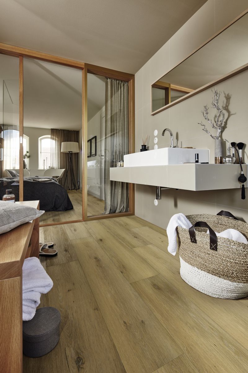 MeisterDesign. rigid ist 100% wasserfest und damit der perfekte Boden fürs Bad, für stark frequentierte Eingangsbereiche und Räume mit direktem Zugang nach draußen.