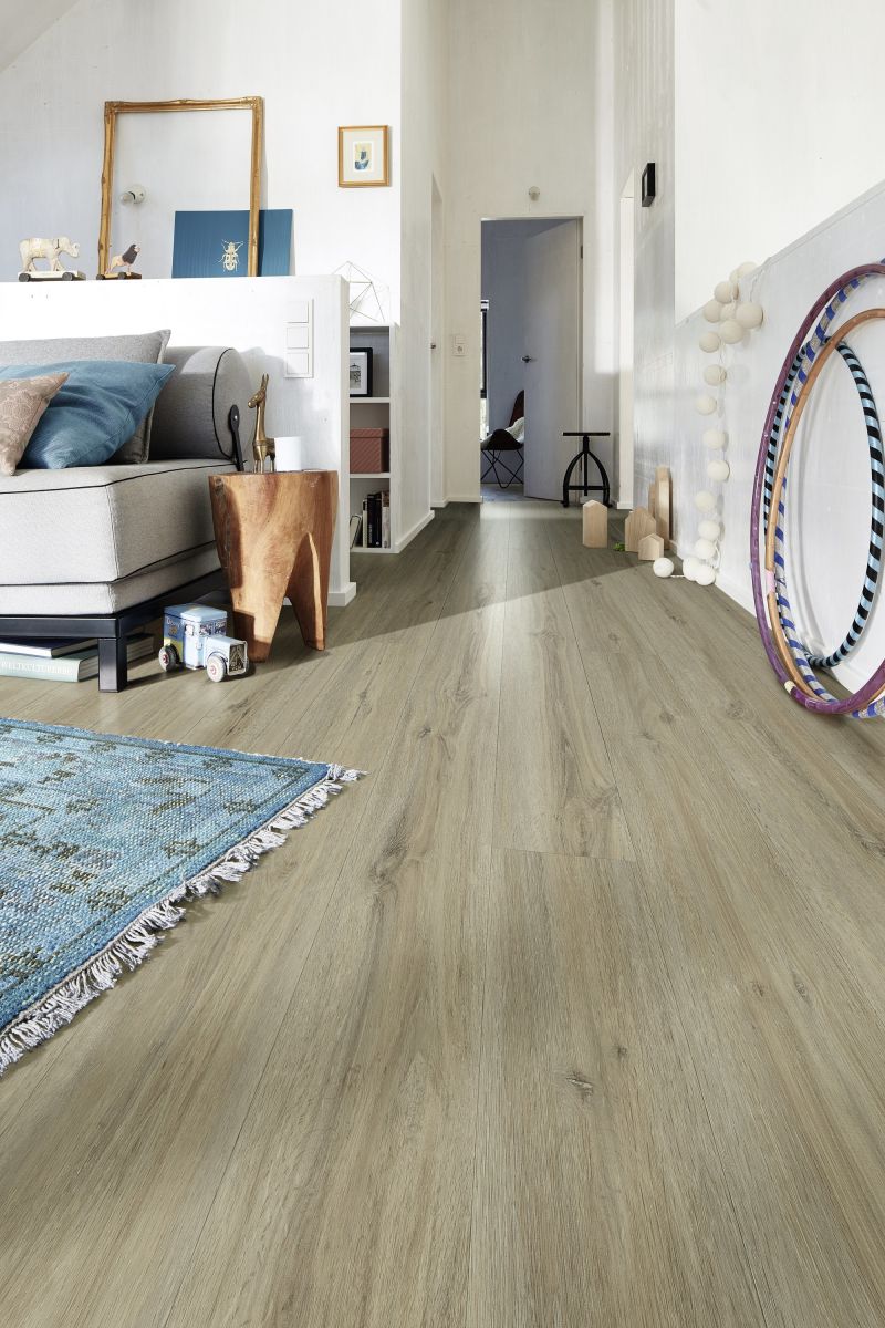 Die Rigid-Polymer-Trägerplatte sorgt im Zusammenspiel mit der integrierten Trittschallkaschierung für eine schwere und dadurch schwingungsdämpfende Konstruktion – und damit einen belastbaren und gleichzeitig leisen Bodenbelag. Zusätzliches Plus: Die hochwertige Oberfläche mit ESH-Lackierung (ESH = Elektronenstrahlhärtung) macht den Boden besonders fleckenunempfindlich!