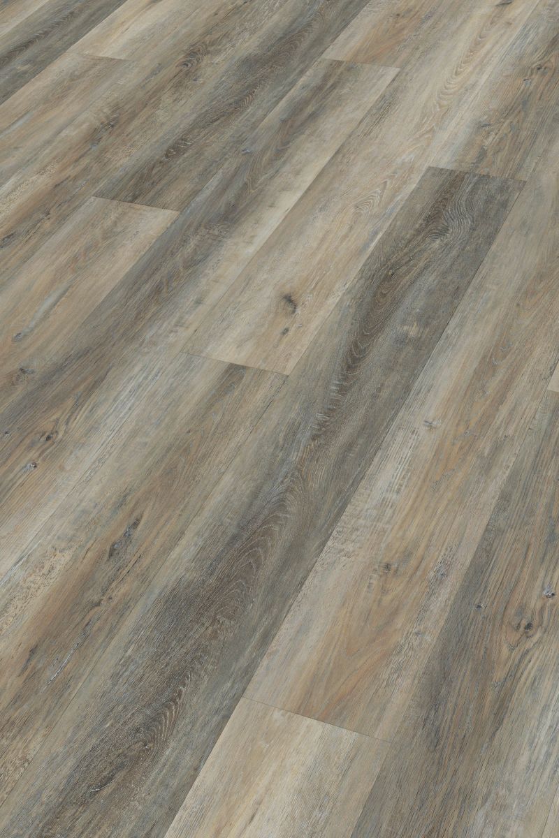 | Kurzdiele | Beanspruchungsklasse 23|33 | Umlaufende Mircofuge | Wasserfest - Feuchtraumgeeignet | Rigid-Polymer-Trägerplatte - wasserfest | Mehrlagige Vinyloberfläche mit ESH-Lackierung | Mit Trittschallkaschierung 1 mm XPS-Schaum | Klicksystem: Multiclic