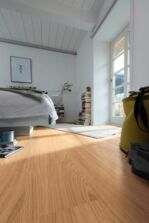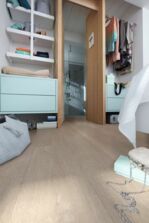 Die schwimmende Verlegung hat übrigens einen weiteren Vorteil: Der Boden wird nicht durch Kleber verunreinigt und lässt sich zur Renovierung nicht nur leichter entfernen, sondern auch einfach und völlig unbedenklich entsorgen.