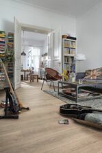 Bei leichten Verschmutzungen genügt einfaches Staubsaugen. Die Oberfläche muss nicht aufwändig geölt oder versiegelt werden, sondern bleibt fast von allein über viele Jahre schön. Auch bei stärkeren Verschmutzungen funktioniert die Reinigung problemlos, denn MEISTER-Laminat ist wischwasserfest – kein Aufquellen, keine Kantenbeschädigung. Die homogene Oberfläche lässt keine Feuchtigkeit durch, die speziell entwickelte und patentierte Geometrie des Klickprofils sorgt für dichte Fugen und die Trägerplatte schützt vor Aufquellen bei Wassereinwirkung.
