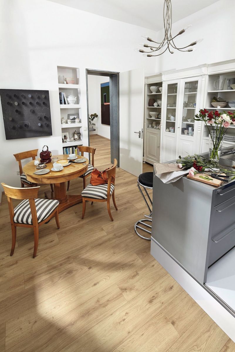 Die Laminatböden dieser vier Kollektionen bieten größtmögliche Vielfalt in Optik und Format bei besten technischen Eigenschaften: Mit einer Aufbauhöhe von 8 mm (10 mm mit Trittschallkaschierung), der Nutzungklasse 23 | 32 für stark genutzte Wohnbereiche und gewerbliche Bereiche mit mittlerer Nutzungsintensität wie Boutiquen und Restaurants und der 4h-Wasserresistenz machen diese Laminatböden alles mit.
