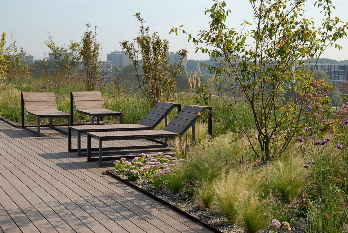 Die Wohnanlage „De Boel“ ist Teil des Generalausbauplans Amsterdam (AUP) und besteht aus einem gemauerten Baukastensystem, das sie in den Niederlanden einzigartig macht. Ein Highlight des Gebäudes ist der Dachgarten mit MOSO Bamboo X-treme Terrasse. Der begrünte Dachgarten ist als „Polderdachgarten“ konzipiert, eine Erfindung des Installateurs „De dakdoktors“. Ein spezielles Kistensystem ermöglicht es, das Regenwasser zu speichern und zu einem späteren Zeitpunkt abzulassen, um die Pflanzen zu bewässern. Die Bambusterrasse bietet den Bewohnern einen Erholungsraum für Dachparties oder Entspannung.