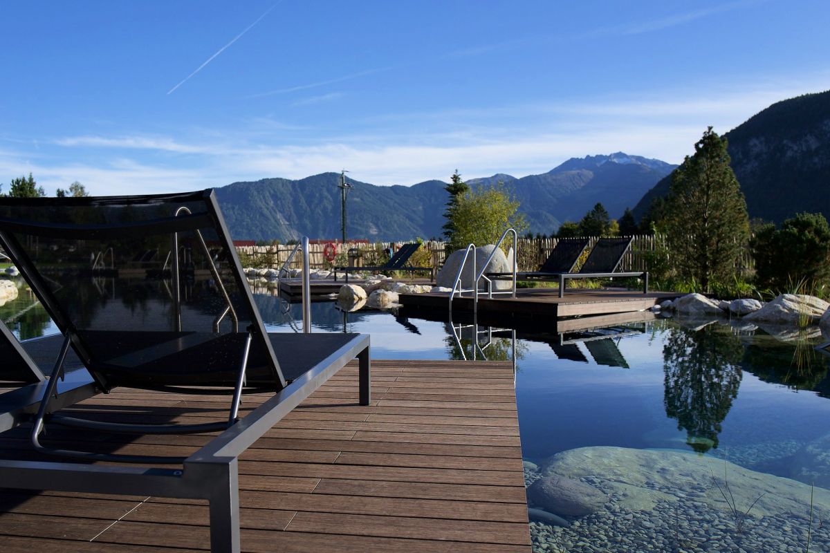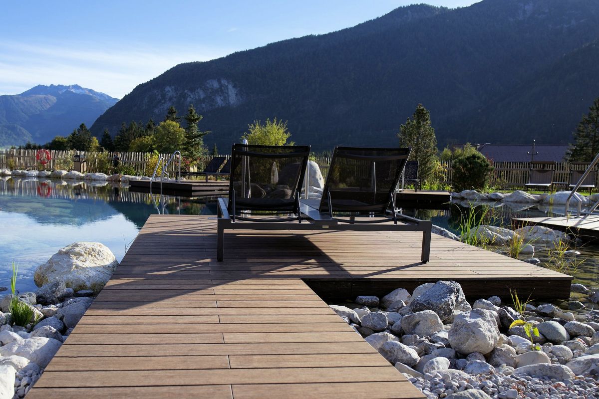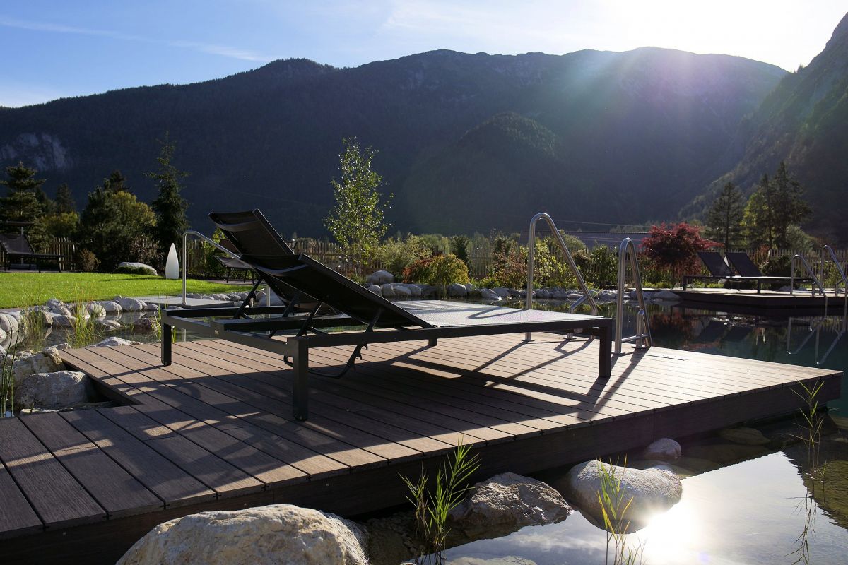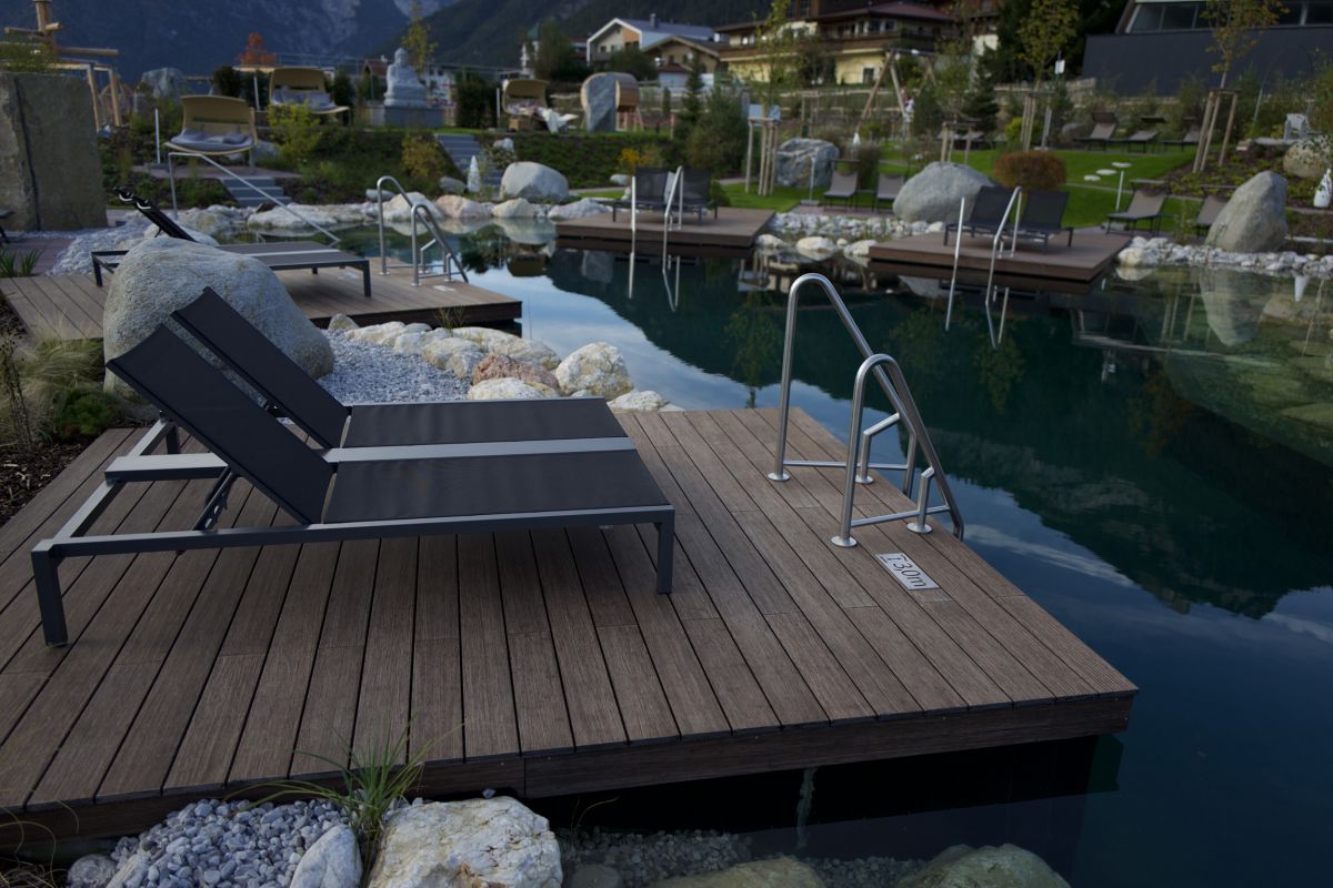 Die 5* Wellness Residenz Alpenrose ist die führende Residenz am Achensee in Maurach, Tirol. Für die Terrassen rund um den neuen Schwimmteich wurde ein robustes und sehr witterungsbeständiges Material gesucht. Nach intensiver Suche hat sich die Familie Kostenzer für Bamboo X-treme entschieden. Der neue Schwimmteich befindet sich in einem Alpenkräutergarten und ist mit einer Wassertiefe von 3 Metern ideal für erwachsene Schwimmer. Die Terrassen werden direkt über dem Wasser gebaut und müssen daher sehr feuchtigkeitsbeständig sein. Bamboo X-treme ist dafür das ideale, extrem stabile Material.