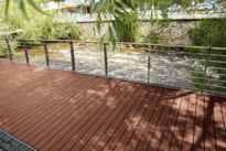 DIE STARKE ist aufgrund ihrer massiven Dielendicke von 38 Millimetern außerordentlich belastbar. Damit bietet sie sich auch als Lösung beim Einbau von größeren Spannweiten an. Eine zusätzliche und aufwändige lastabtragende Unterkonstruktion muss dabei nicht eingebaut werden. Sie ist deshalb als Belag sehr vielseitig einsetzbar. So ist DIE STARKE neben ihrem klassischen Einsatz als Terrassendiele auch prädestiniert als Bodenbelag für Treppen, Bootsstege oder Laubengänge. Die Montage der Dielen ist auf schwimmendem wie auch auf festem Untergrund möglich.