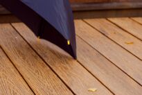 Mit unserer neuen Null-Grad-Massivdiele DIE SMARTE haben wir ein Produkt entwickelt, das besonders leicht zu pflegen ist. Durch eine leichte Wölbung kann Wasser automatisch abfließen und die Terrasse ohne Gefälle verlegt werden. Die Oberfläche unterstützt diesen Effekt und verhindert so eine Stauung von witterungs- oder reinigungsbedingtem Wasser auf der Terrasse.