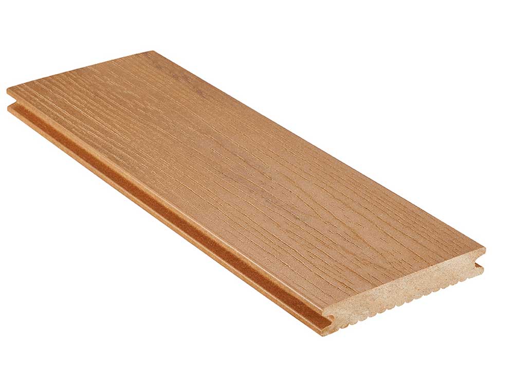Die natürliche Optik der Holzmaserung wird durch die edlen Naturtöne ästhetisch unterstrichen. Zwei Oberflächenvarianten, die beidseitig anwendbar sind, bietet diese 14 Zentimeter breite Diele. Egal ob leicht gebürstet für ein schlichtes, akzentfreies Erscheinungsbild oder fein geriffelt für mehr Struktur, beide zeichnen sich durch ein edles, aber dennoch robustes Design aus.