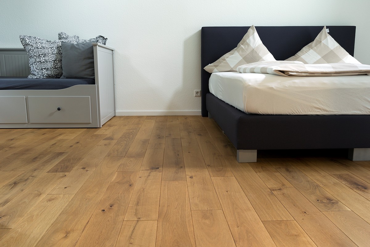 Wichtig: Eine Massivholzdiele sollte stets eine offenporige Oberfläche haben. Dadurch bleibt der Boden atmungsaktiv, fußwarm und erhält seine natürlichen Eigenschaften.