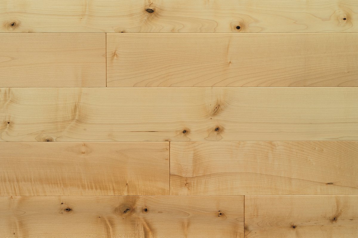Der Ahorn ist das hellste Hartholz aus unserer Region und gehört zu den wertvollsten Edellaubhölzern. Deshalb gilt dieser Massivholzboden als etwas ganz Besonderes. Die insgesamt gleichmäßige Struktur und einheitliche Farbgebung des Holzes, von weiß bis gelblich-weiß, wird durch dunkle Adern und Ästen reich variiert. So bekommt dieser Dielenboden einen edlen Charme.