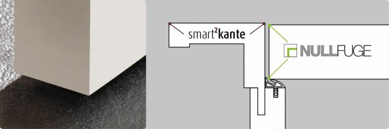 Bei stumpfen ASTRA-Türen mit CPL Weißlack-Oberflächen wird eine innovative Kantentechnologie eingesetzt. Dadurch wird eine praktisch unsichtbare Verbindung des Oberflächenmaterials im aufeinanderstoßenden Kantenbereich erzielt. Bei herkömmlicher Fertigung bleiben diese Stoßkanten sichtbar. Durch die ASTRA NULLFUGE wirkt das stumpfe Türblatt wie aus einem Stück. Als passende Zarge für stumpfe Türen hat sich die Zarge mit der smart2kante bewährt.