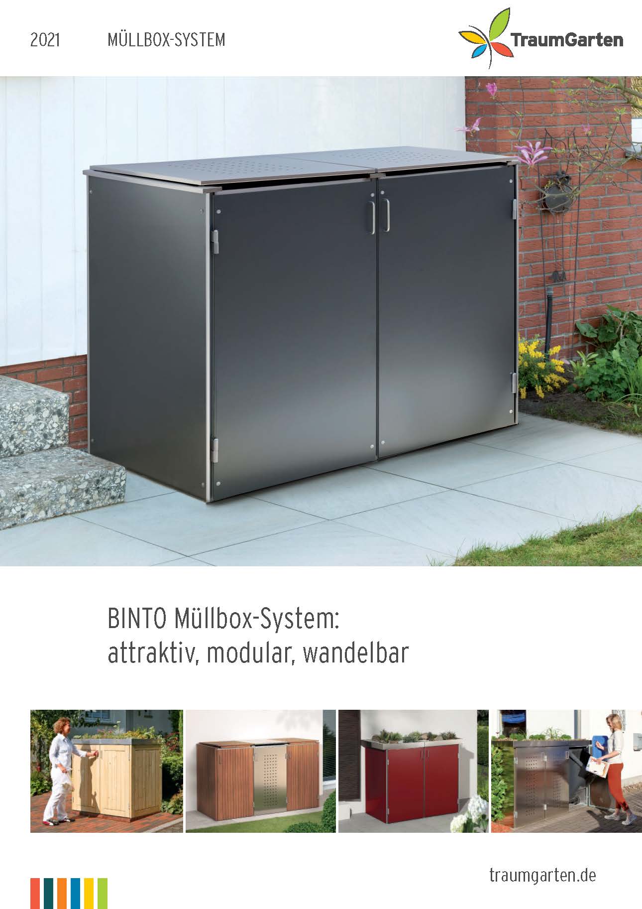 BINTO SYSTEM - schöner und variabler lassen sich Mülltonnen nicht verstecken: Wählen Sie aus verschiedenen Materialien und Farben oder stellen Sie sich Ihren individuellen Materialmix zusammen. Das Grundgerüst aus verzinktem Stahl ist bei allen Design-Varianten gleich. Sie können jederzeit erweitern oder die alte Verkleidung durch eine neue ersetzen. Dazu wählen Sie entweder Klappdeckel oder die Edelstahl-Pflanzschale.