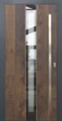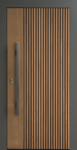 Wir bieten zwei Oberflächen in Shou Sugi Ban Ausführung für die Vorhangschale unserer FENNEN Edition an. Beide basieren auf der Holzart Accoya® . Die Bretter werden für jede bestellte Haustür sorfältig im Werk zusammen gestellt und zu unserem Partner ins holländische Leersum gebracht. Die erfahrenen Brennmeister vor Ort lassen dann nach jahrhundertealter japanischer Tradition die wunderschönen schwarzen Oberflächen entstehen. Der Prozess entwickelt zudem natürliche Resistenzen gegen Schimmel, Feuchtigkeit und Verwitterung. Oberfläche NAKATADO: Die Bretter werden eingebrannt und gebürstet, der natürliche Verlauf der Holzstrukturen wird dadurch dreidimensional mit Höhenunterschieden bis zu 2 mm im Verlauf. Die Behandlung der Oberfläche erfolgt mit Bito Black Holzöl. So wird der Effekt zusätzlich verstärkt. Die finale Oberfläche ist extrem wetterfest und färbt nicht ab. Die Nachbehandlung mit Bito Black ist problemlos möglich. Ebenso die Reinigung mit einem weichen Tuch und Wasser. Oberfläche MARUGAME: Bei dieser Variante entsteht durch den Brennvorgang ein charakteristisches eher gleichmäßiges Muster der Kohleschicht mit leichtem Glanz. Diese Schicht ist sehr hart und hat sich im Außeneinsatz bereits als langjährige Fassadenverkleidung bewährt. Sie wird zusätzlich nach dem Brennvorgang mit einem Epoxyd-Harz veredelt. Die Oberfläche wird dadurch noch härter, unempfindlicher gegen Stöße, das Abfärben der Kohle wird verhindert. Marugame kann nicht nachbehandelt werden. Die Reinigung erfolgt einfach mit Wasser und weicher Bürste. Auf beide Oberflächen erhalten Sie unsere reguläre Gewährleistung. Die sehr spezielle Konstruktion dieser Tür ermöglicht es, die komplette Vorhangschale mit wenigen Handgriffen auszuwechseln. Das trifft auf alle Modelle der Edition FENNEN ohne Glasausschnitt zu. Darüber hinaus ist es sogar möglich, einzelne Bohlen auszutauschen, sollten diese beispielsweise mechanisch beschädigt werden. Dieses hohe Maß an Flexibilität ist ein besonderer Vorzug, den Sie
