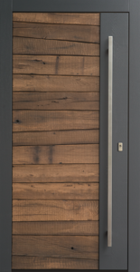 Besonderes Merkmal ist der rustikale, authentische Charakter dieser Modelle. Das Türblatt ist außen mit massiven handbearbeiteten Eichenbohlen bestückt. Die Bohlen sind handverlesen und werden auf Eignung geprüft und getrimmt. Gebrauchsspuren, Auskerbungen, Abrieb, Astlöcher sind ausdrücklich erwünscht. Die Oberfläche der Eichenbohlen ist ausschließlich in dem speziell für diese Modelle abgemischten Farbton ‚Altholz‘ erhältlich. Die Grundierung bereitet diese extrem profilreichen Holzoberflächen auf die Endbehandlung mit hochwertigem wasserbasiertem Holzöl vor. Das Ergebnis ist wunderbar matt und natürlich anmutig. Diese Oberfläche kann ganz einfach gepflegt bzw. nachbehandelt werden. Wir empfehlen das Pullex Holzöl von ADLER. Je nach Intensität der Bewitterung empfiehlt sich die Behandlung 1 - 2 mal jährlich. So kann einer Vergrauung des Holzes entgegen gewirkt werden. Pflegehinweise zur Werterhaltung begleiten die Tür bei Auslieferung. Dennoch wird sich die Oberfläche der Eichenbohlen, je nach Einbaulage, im Laufe der Zeit verändern, das ist ein natürlicher Prozess und ausdrücklich so gewollt. Aus diesem Grund ist die Oberfläche von der Gewährleistung ausgeschlossen. Die Einbausituation erfordert bauseits einen konstruktiven Schutz, der eine direkte Sonneneinstrahlung und Bewitterung durch Niederschläge verhindert. Die sehr spezielle Konstruktion dieser Tür ermöglicht es, die komplette Vorhangschale mit wenigen Handgriffen auszuwechseln. Das trifft auf alle Modelle der gesamten Edition FENNEN ohne Glasausschnitt zu. Darüber hinaus ist es sogar möglich, einzelne Bohlen auszutauschen, sollten diese beispielsweise mechanisch beschädigt werden. Dieses hohe Maß an Flexibilität ist ein besonderer Vorzug, den Sie nicht außer Acht lassen sollten.