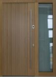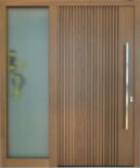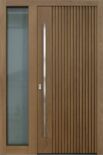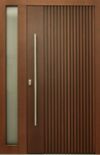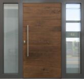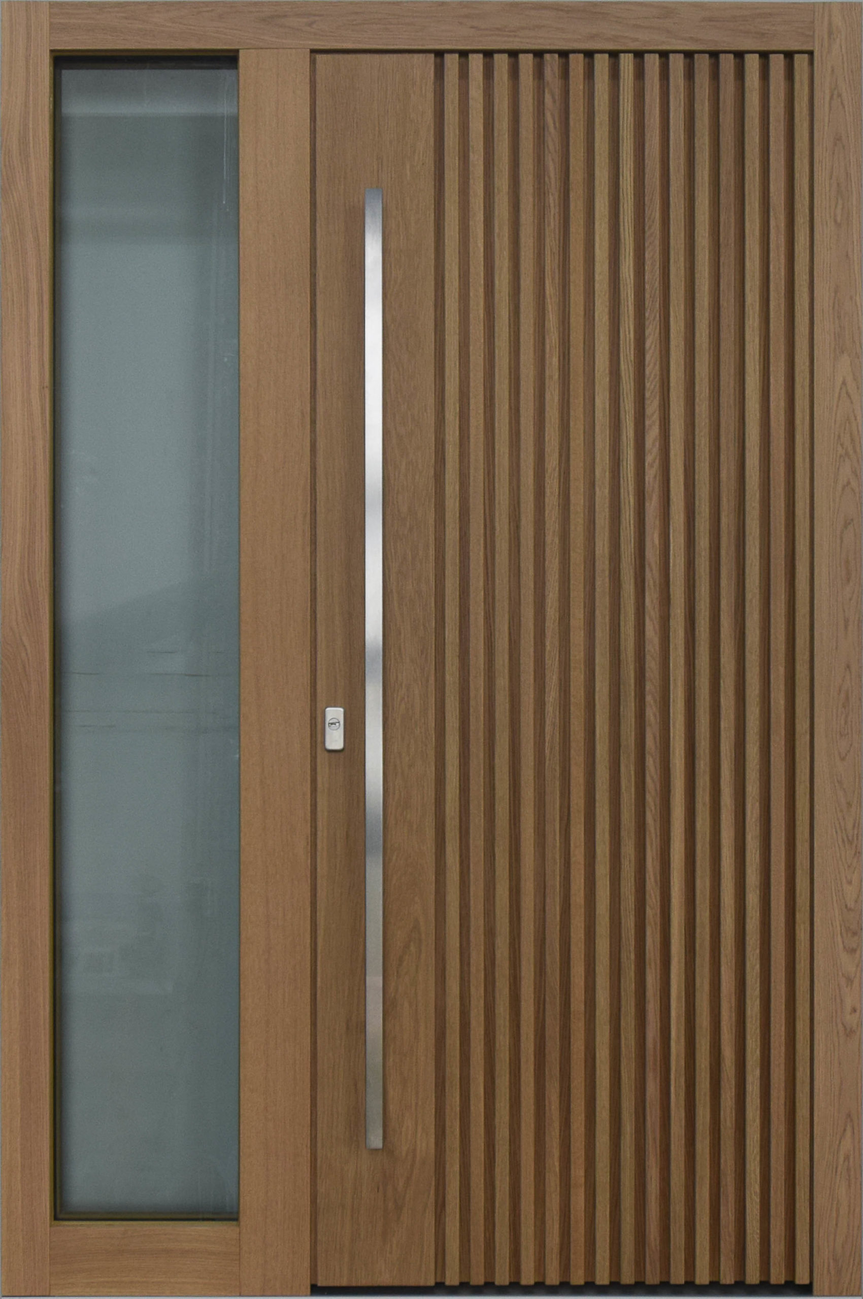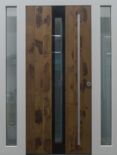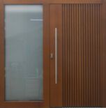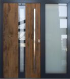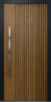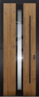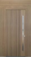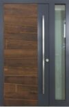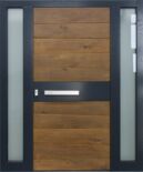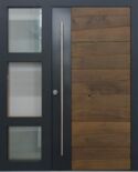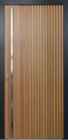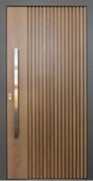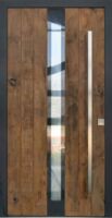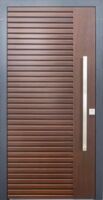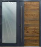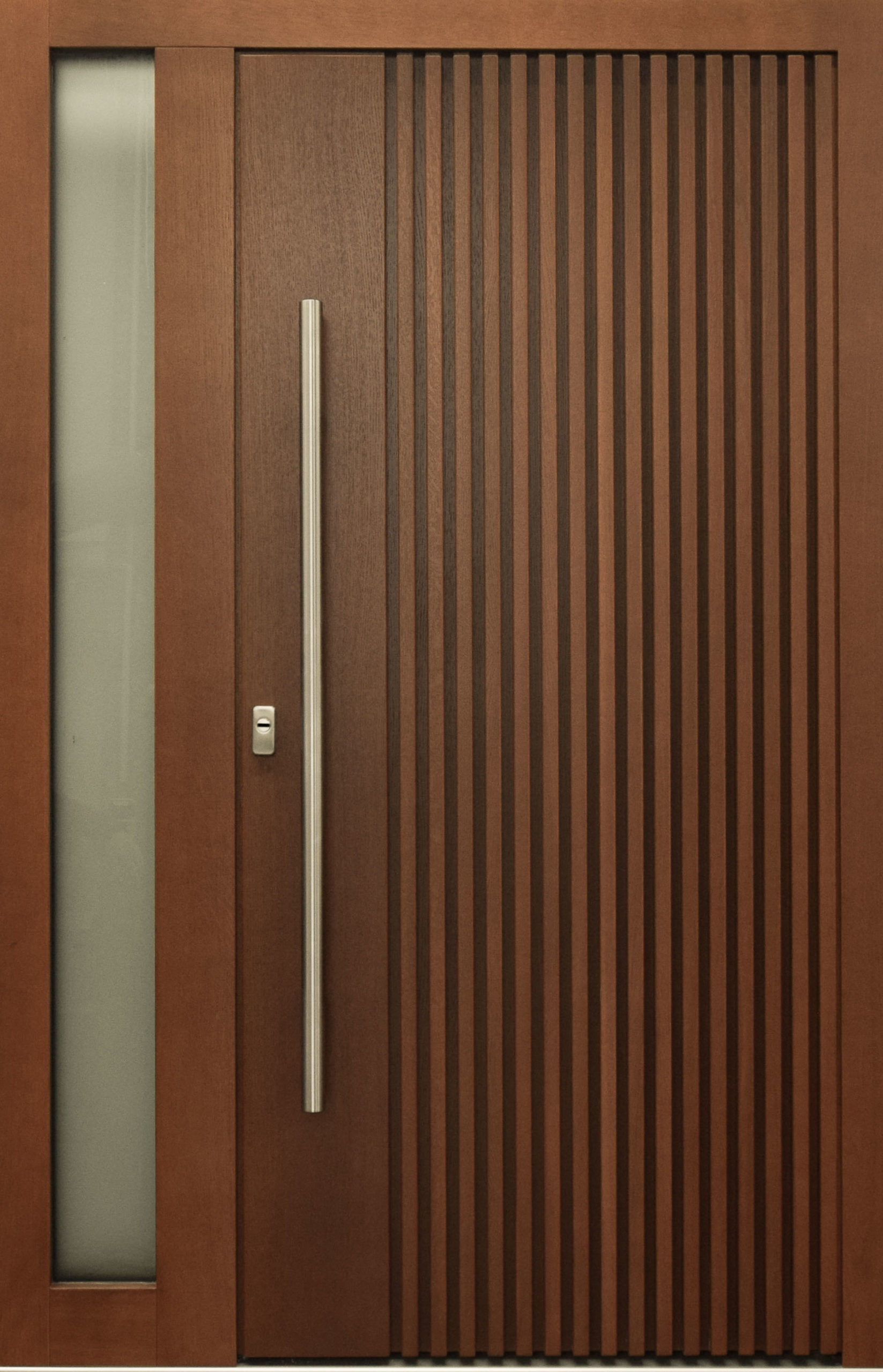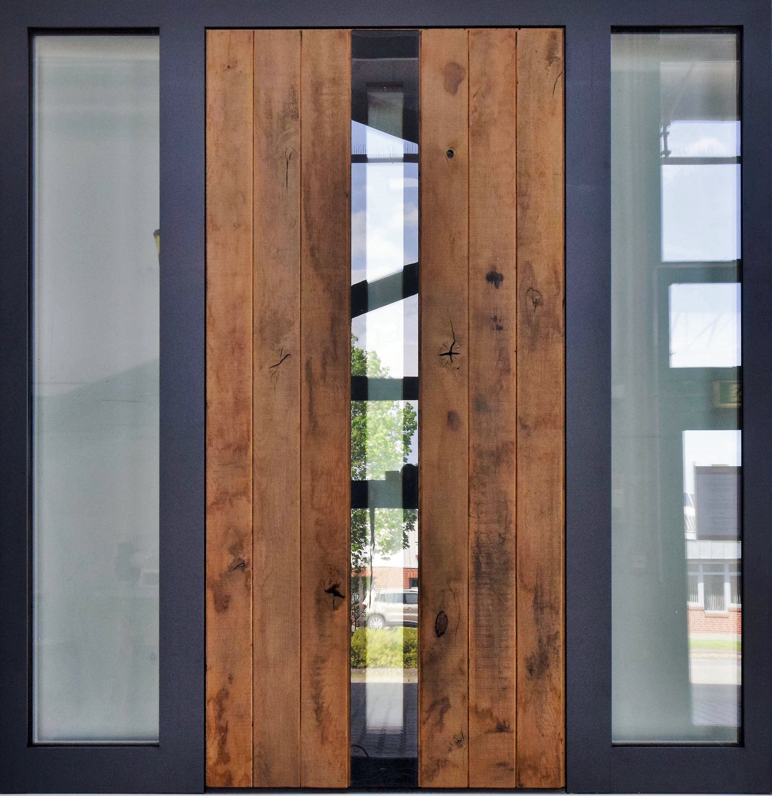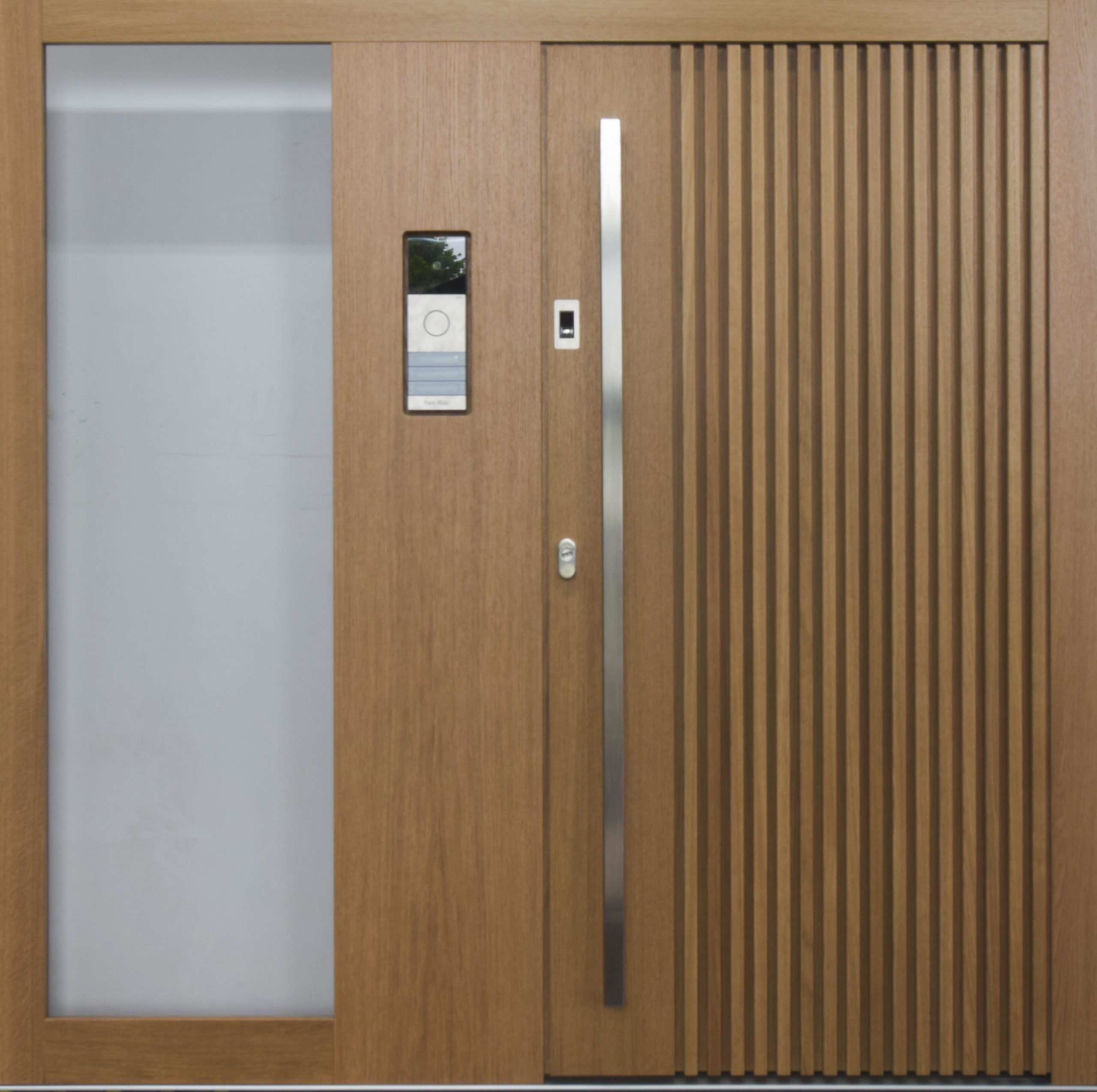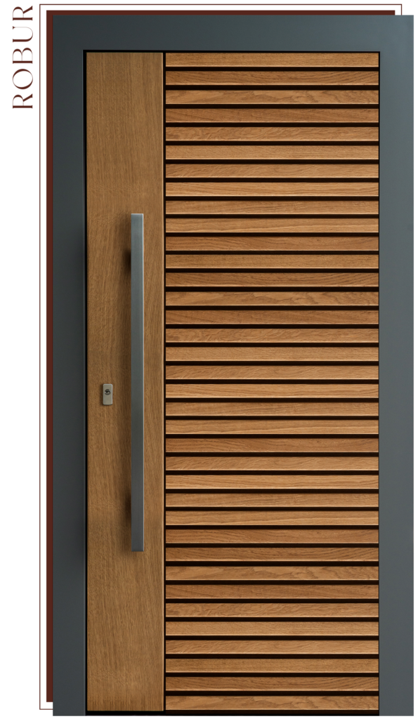 Wir bieten zwei Oberflächen in Shou Sugi Ban Ausführung für die Vorhangschale unserer FENNEN Edition an. Beide basieren auf der Holzart Accoya® . Die Bretter werden für jede bestellte Haustür sorfältig im Werk zusammen gestellt und zu unserem Partner ins holländische Leersum gebracht. Die erfahrenen Brennmeister vor Ort lassen dann nach jahrhundertealter japanischer Tradition die wunderschönen schwarzen Oberflächen entstehen. Der Prozess entwickelt zudem natürliche Resistenzen gegen Schimmel, Feuchtigkeit und Verwitterung. Oberfläche NAKATADO: Die Bretter werden eingebrannt und gebürstet, der natürliche Verlauf der Holzstrukturen wird dadurch dreidimensional mit Höhenunterschieden bis zu 2 mm im Verlauf. Die Behandlung der Oberfläche erfolgt mit Bito Black Holzöl. So wird der Effekt zusätzlich verstärkt. Die finale Oberfläche ist extrem wetterfest und färbt nicht ab. Die Nachbehandlung mit Bito Black ist problemlos möglich. Ebenso die Reinigung mit einem weichen Tuch und Wasser. Oberfläche MARUGAME: Bei dieser Variante entsteht durch den Brennvorgang ein charakteristisches eher gleichmäßiges Muster der Kohleschicht mit leichtem Glanz. Diese Schicht ist sehr hart und hat sich im Außeneinsatz bereits als langjährige Fassadenverkleidung bewährt. Sie wird zusätzlich nach dem Brennvorgang mit einem Epoxyd-Harz veredelt. Die Oberfläche wird dadurch noch härter, unempfindlicher gegen Stöße, das Abfärben der Kohle wird verhindert. Marugame kann nicht nachbehandelt werden. Die Reinigung erfolgt einfach mit Wasser und weicher Bürste. Auf beide Oberflächen erhalten Sie unsere reguläre Gewährleistung. Die sehr spezielle Konstruktion dieser Tür ermöglicht es, die komplette Vorhangschale mit wenigen Handgriffen auszuwechseln. Das trifft auf alle Modelle der Edition FENNEN ohne Glasausschnitt zu. Darüber hinaus ist es sogar möglich, einzelne Bohlen auszutauschen, sollten diese beispielsweise mechanisch beschädigt werden. Dieses hohe Maß an Flexibilität ist ein besonderer Vorzug, den Sie