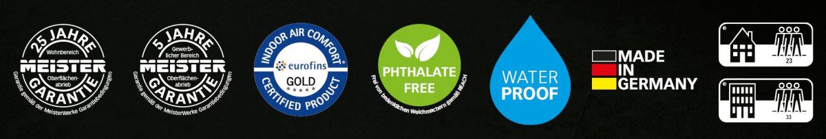 | MEISTER-Garantie* 25 Jahre im Wohnbereich, 5 Jahre im gewerblichen Bereich | Stärke: 5,5 mm | Deckmaß 1290 x 228 mm