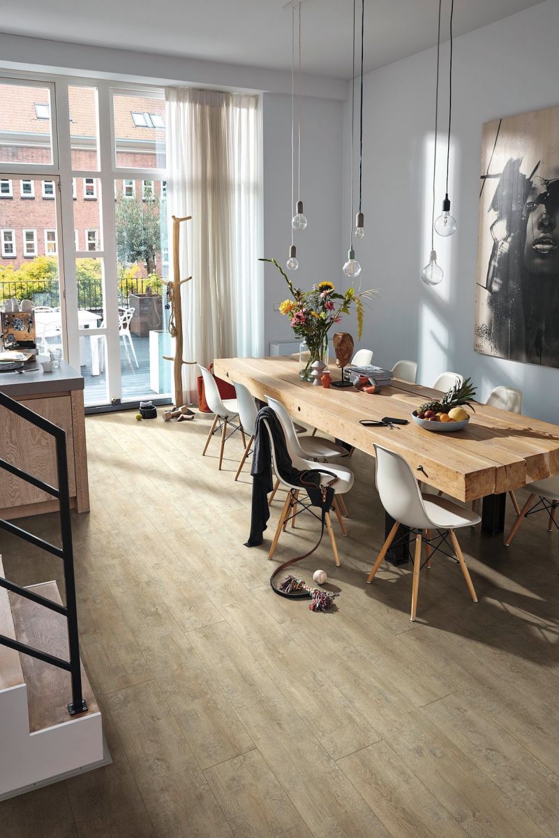 Die Laminatböden dieser vier Kollektionen bieten größtmögliche Vielfalt in Optik und Format bei besten technischen Eigenschaften: Mit einer Aufbauhöhe von 8 mm (10 mm mit Trittschallkaschierung), der Nutzungklasse 23 | 32 für stark genutzte Wohnbereiche und gewerbliche Bereiche mit mittlerer Nutzungsintensität wie Boutiquen und Restaurants und der 4h-Wasserresistenz machen diese Laminatböden alles mit.