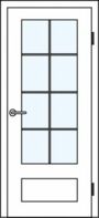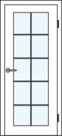 Modell Park Lane | Typ 2210, Schiebetür in der Wand, 2-flügelig, mit Sprossen (links) | Typ 2210, mit Sprossen (rechts) | Lack ähnl. RAL 9010