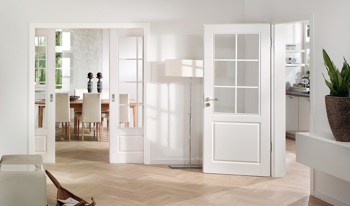 Links: Modell Park Lane | Typ 2210 Lack ähnl. RAL 9010 | Zarge B70 mit 2 Rillen