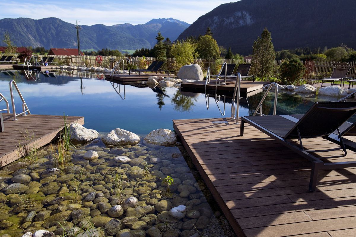 Die 5* Wellness Residenz Alpenrose ist die führende Residenz am Achensee in Maurach, Tirol. Für die Terrassen rund um den neuen Schwimmteich wurde ein robustes und sehr witterungsbeständiges Material gesucht. Nach intensiver Suche hat sich die Familie Kostenzer für Bamboo X-treme entschieden. Der neue Schwimmteich befindet sich in einem Alpenkräutergarten und ist mit einer Wassertiefe von 3 Metern ideal für erwachsene Schwimmer. Die Terrassen werden direkt über dem Wasser gebaut und müssen daher sehr feuchtigkeitsbeständig sein. Bamboo X-treme ist dafür das ideale, extrem stabile Material.