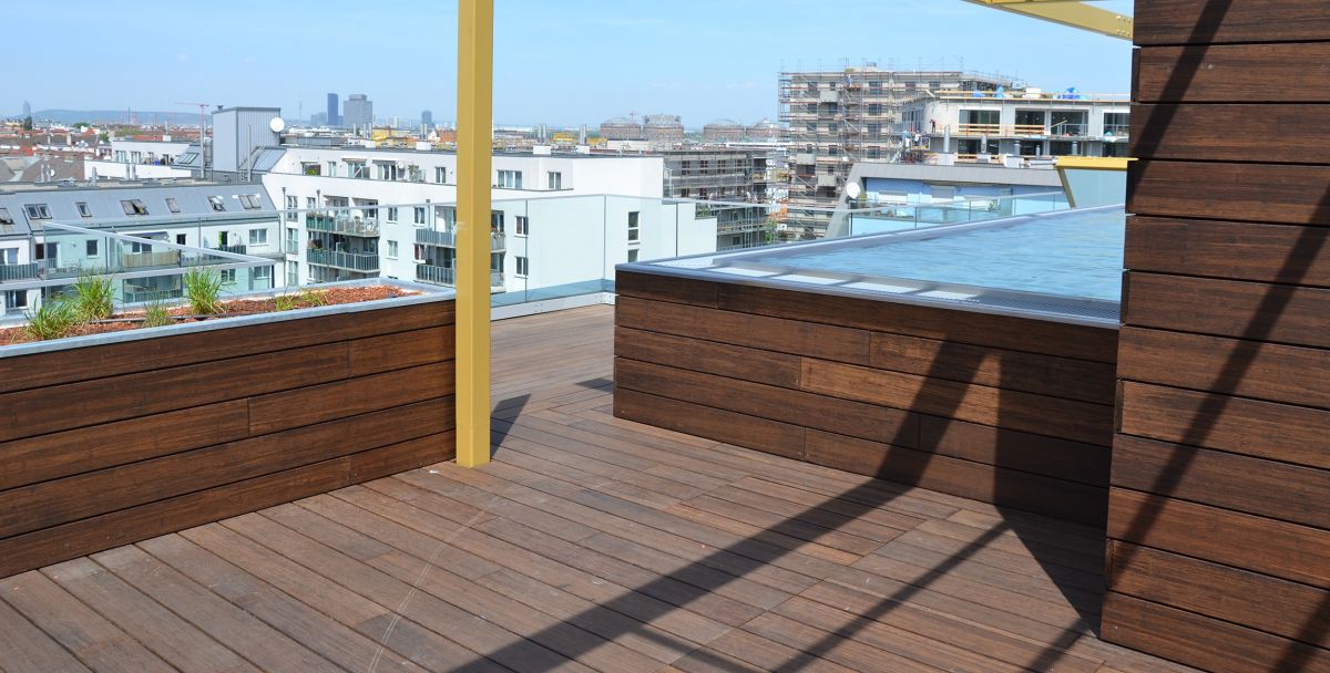 In der Wohnanlage Braunhubergasse in Wien wurden insgesamt ca. 1580 m² MOSO® Bamboo X-treme® Terrassendielen verlegt. Jedes Appartement verfügt über einen privaten Außenbereich in Form einer Loggia, eines Balkons oder einer Dachterrasse. Alle diese Freiflächen sind mit MOSO® Bamboo X-treme® Terrassendielen auf einer Aluminium-Unterkonstruktion bedeckt. Auf dem Dach befindet sich eine öffentliche Dachterrasse mit Pool zur Mitbenutzung aller Bewohner, ebenfalls mit nachhaltigem Bambus verkleidet. Der grüne Innenhof der Wohnanlage dient als weitere Kommunikationszone für die Bewohner und bietet Spiel- und Ruhezonen sowie eine Bambusterrasse für gemeinsame Gartenpartys.