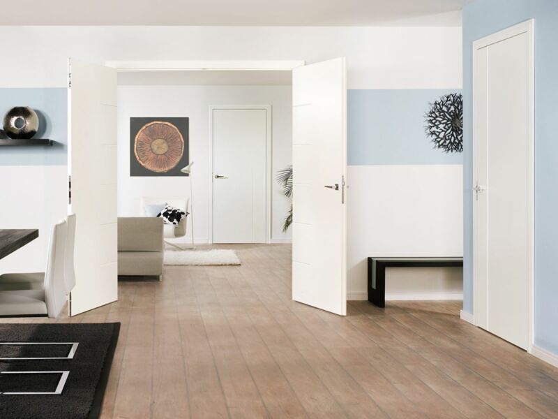 Rechts: Modell Weiß Art | Typ 840, stumpf | Lack ähnl. RAL 9010 | Zarge eckig, 1 Rille Vorne links: Modell Weiß Art | Typ 845, 2-flg., stumpf | Lack ähnl. RAL 9010 | Zarge eckig, 1 Rille Hinten links: Modell Weiß Art | Typ 841, stumpf | Lack ähnl. RAL 9010 | Zarge eckig, 1 Rille